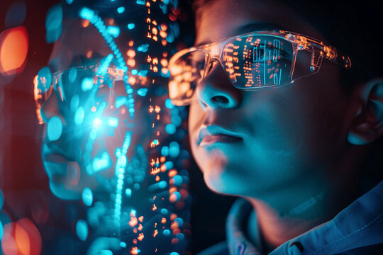 Back to school,Ai Technology Online Education Metaverse in School,Student Kid using digital CHAT BOT Creative Robot Game on Screen Mobile Tablet with Cyber Diagram Interface and Icon Futuristic Future