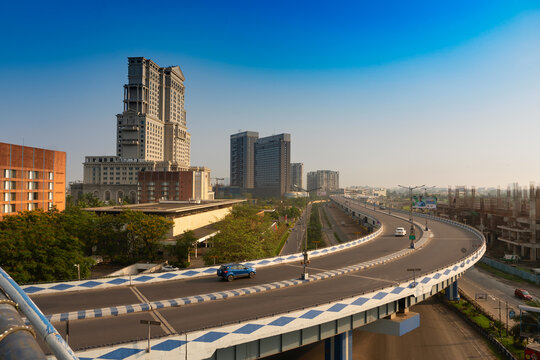 Kolkata, West Bengal, India - January 1st 2016 : Parama Island flyover, popularly known as Ma or Maa flyover is a long flyover. From Alipore to Eastern Metropolitan Bypass of Kolkata.
