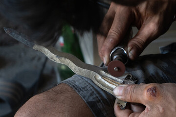 making traditional Balinese keris manually. The process of carving Balinese keris details are a little complicated and meticulous