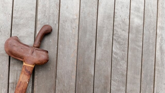 Traditional Indonesian kris standing against a rustic wooden wall. This image highlights the elegance of Indonesian craftsmanship and cultural heritage.