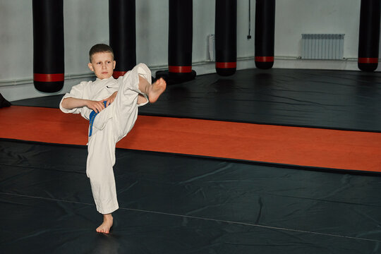 teenage boy performing kudo movements, taekwondo, martial arts