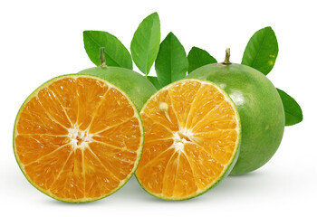 A small kumquat tree with vibrant orange fruits, isolated on a transparency background