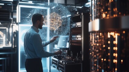 A scientist conducting experiments with quantum computers in a lab, high-tech research lab with quantum processors and advanced computing equipment, High-tech style
