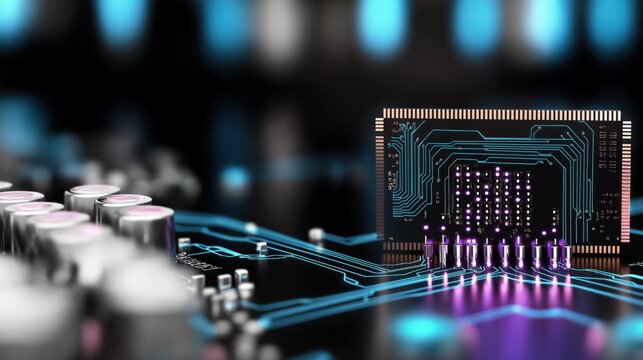 Futuristic quantum computing chip showcasing intricate nano-scale wiring and superconducting qubits in a minimalistic lab environment