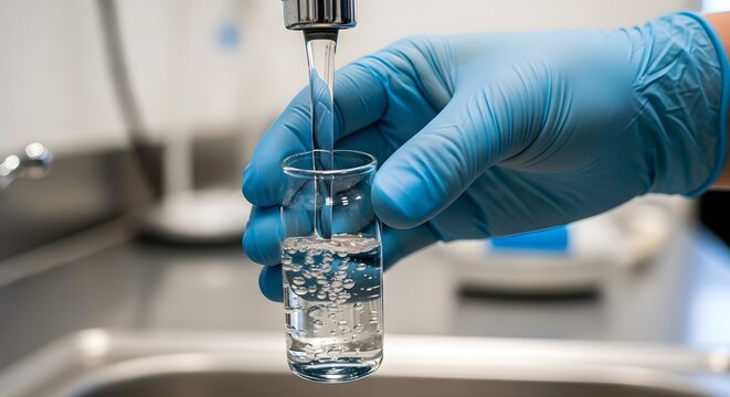 Scene of a water testing kit assessing tap water quality.
