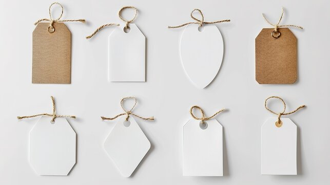 Various shape of blank white paper label or cloth tag set isolated on white background. Price tag mockup template with copy space for brand, information. Shopping, sale concept, black friday sale.