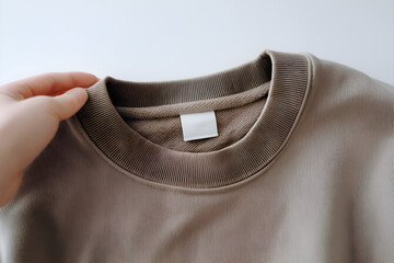 Close-up of Beige Sweatshirt with Blank Label for Branding or Design