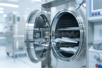 An autoclave sterilizing laboratory equipment, ensuring a contaminationfree environment for reliable experimental results with copy space