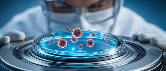 A scientist examines microorganisms in a petri dish, highlighting advanced research in a laboratory setting.