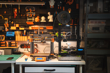 The Robotics Workshop: A pristine white lab with sleek robotic arms and sparkling tools.