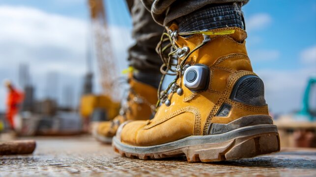 Close Up of Integrated Construction Boots on a Worksite
