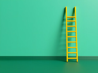 Metal fire escape stairs leading to a door on a turquoise corrugated metal wall.