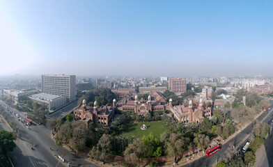 Aerial View to the Badshahi Mughal-era congregational Mosque in Lahore, Punjab province, Pakistan