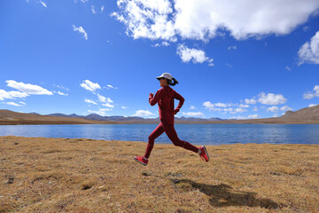 Runner bending forward on coastal highway with dynamic light streak overlay conveying endurance