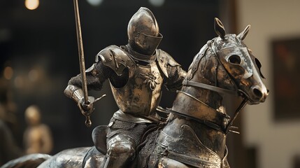 7. Knight figure in a jousting pose with a lance and horse armor