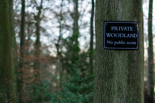 Tree in the middle of the woods with sign Private Land