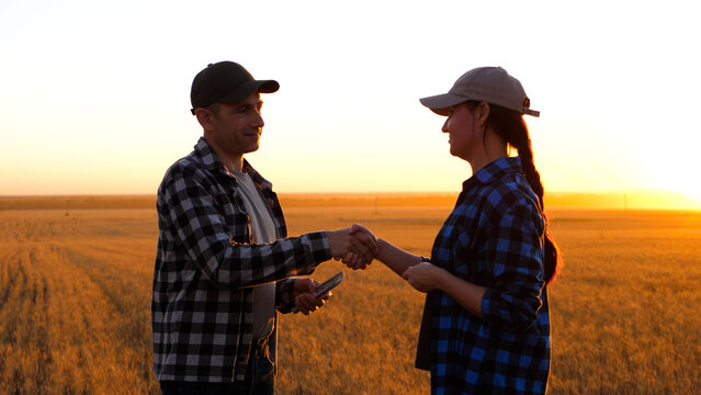 farmer makes deal to buy farmland. handshake of farmers them as a symbol of the deal of purchase and sale. purchase and sale of farmland