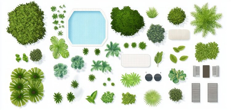 Set of hedge elements isolated on transparent background. Top view.  3D render.