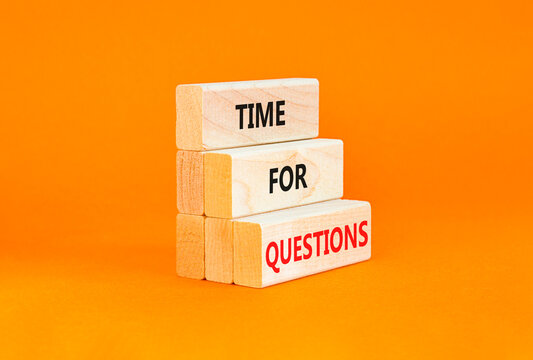 Time for questions symbol. Concept words Time for questions on beautiful wooden blocks. Beautiful orange table orange background. Business time for questions concept. Copy space.