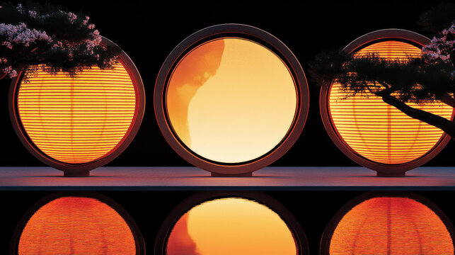 Traditional Lanterns Reflecting in Water