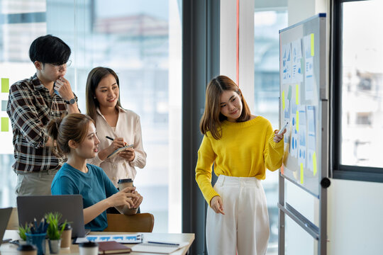 Business team meeting working with new startup project, discussion and analysis data the charts and graphs. Digital tablet calculator, laptop computer using, Business finances and accounting concept.