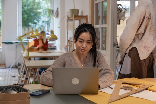 Title: A person using a laptop with a holographic AI brain and data charts floating above the