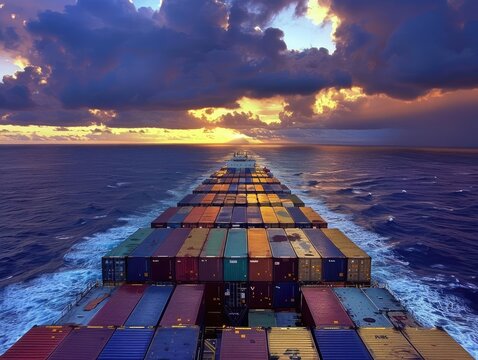 A ship navigating through open waters with a cargo load, representing international shipping and its importance in global commerce
