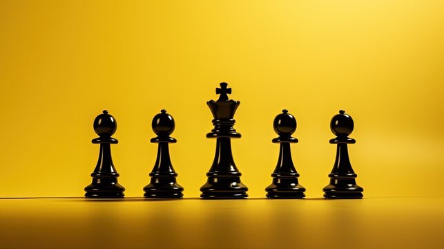 A little silver pawn chess piece standing with the win near a fallen golden queen chess piece on a chessboard on dark background. Leadership, winner,