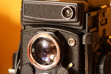 Large format printing machine in operation. Close up printing business in pink cinematic style with copy space