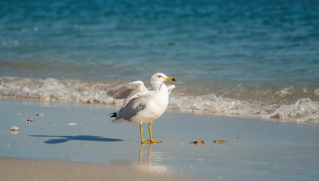 Birdwatching scene with a gull resting on the shoreline, highlighting coastal habitat conservation