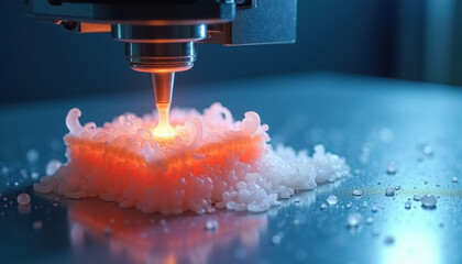 Close-up of CNC laser machine cutting through metal with glowing sparks, highlighting modern industrial technology. Generative AI