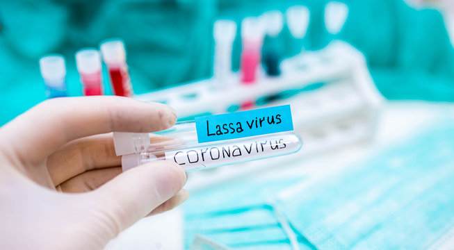 2020 epidemic test tubes with Lassa fever and coronavirus,
