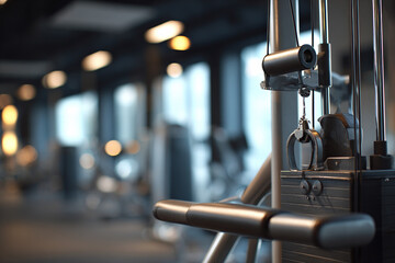 Detailed close-up of lat pulldown machine in a clean and mode