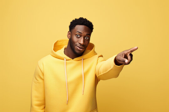 Man Pointing to the Side Black Man Yellow Background