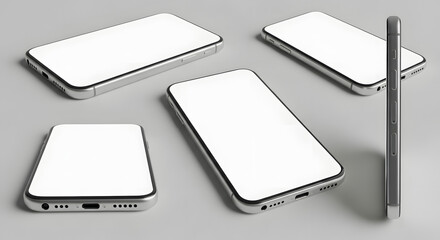 Scattered Smartphones Mockup with Blank Screens for App and UI Design Showcase