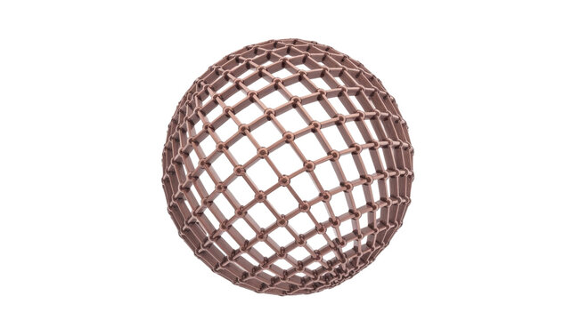 A 3D render of a lattice structure. Spherical nodes are connected by curved lines. Sky and ground create a clean, minimalist setting