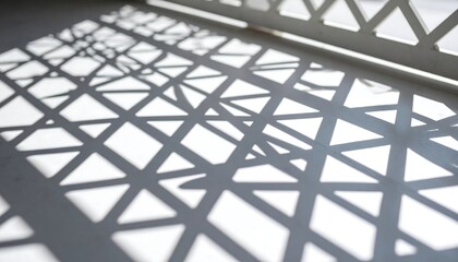 Abstract Minimalist Geometric Shadows Cast by Islamic Jali Screen on Plain White Wall during Golden Hour with Copy Space