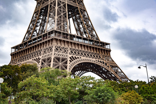 Tourists exploring eiffel tower with neon augmented reality overlay