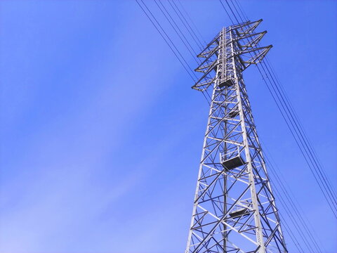 High-voltage towers and wireframe surrounded by futuristic digital data
