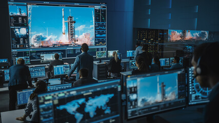 Rocket Launch Control Center: Engineers Witnessing Liftoff