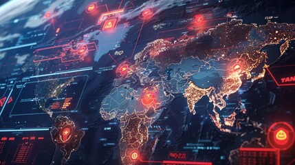 Global Missile Threat Detection in High-Tech Command Center for Strategic Defense Analysis