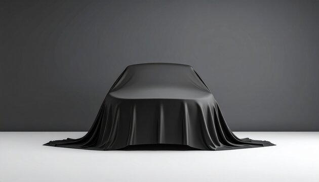 Mysterious Black Car Unveiling Dramatic Reveal Studio Shot.