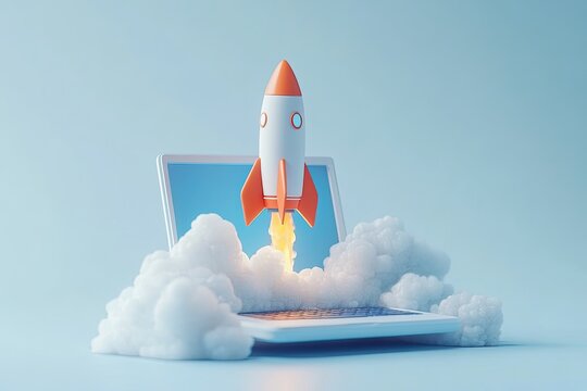 Semi-Cartoon Rocket Launch from Laptop Screen