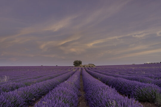 Twilight lavender hills with pastel sky creating tranquil scenery