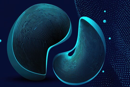 AI generated abstract blue data wave flow with glowing layered curves and fine texture on dark background conveying technology precision balance continuity and modern digital energy