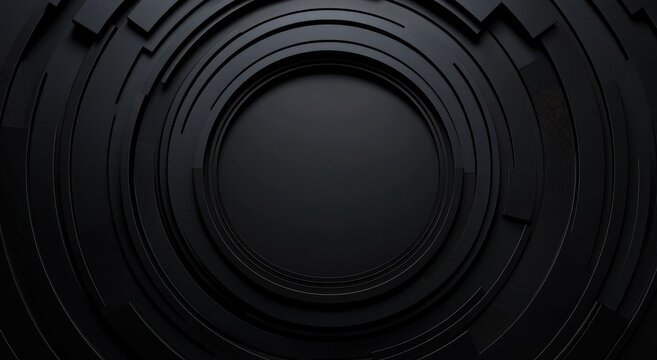 Dark, concentric circles, geometric design.  Abstract, technological, layered shapes