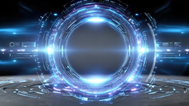 Futuristic hud displaying layered wireframe panels, radar rings and green readouts