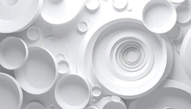 An abstract, all-white composition showcasing a variety of circular shapes, varying in size and depth, creating a layered and textured effect