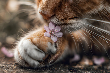 Applying brushstroke laying peach paint on primed canvas macro texture warm light