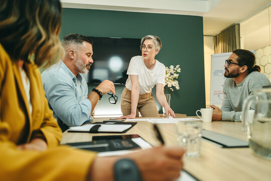 Leader Discussing Strategies With Diverse Office Team Images